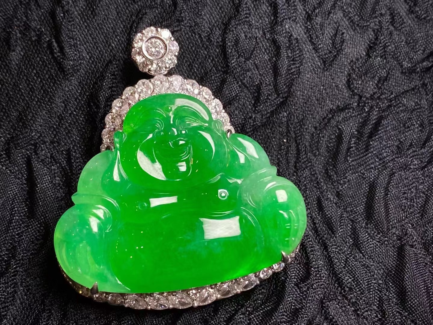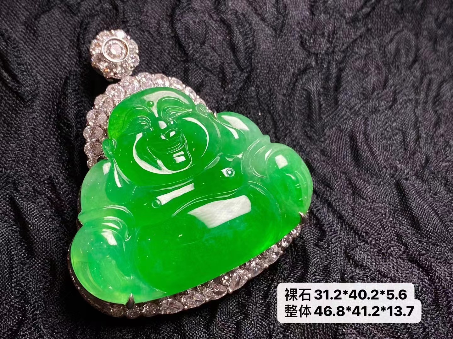 【描述】冰種滿綠翡翠佛公,色澤鮮艷,圓潤飽滿
