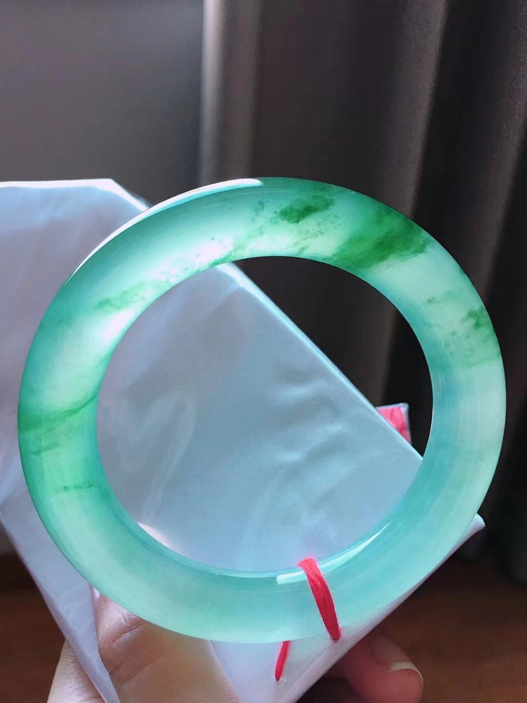 圓條高冰飄綠花手鐲,質(zhì)量貨!冰透起光!花色清新優(yōu)雅!完美水足!尺寸56.6*11.2*11.2mm實物超冰~六位數(shù)